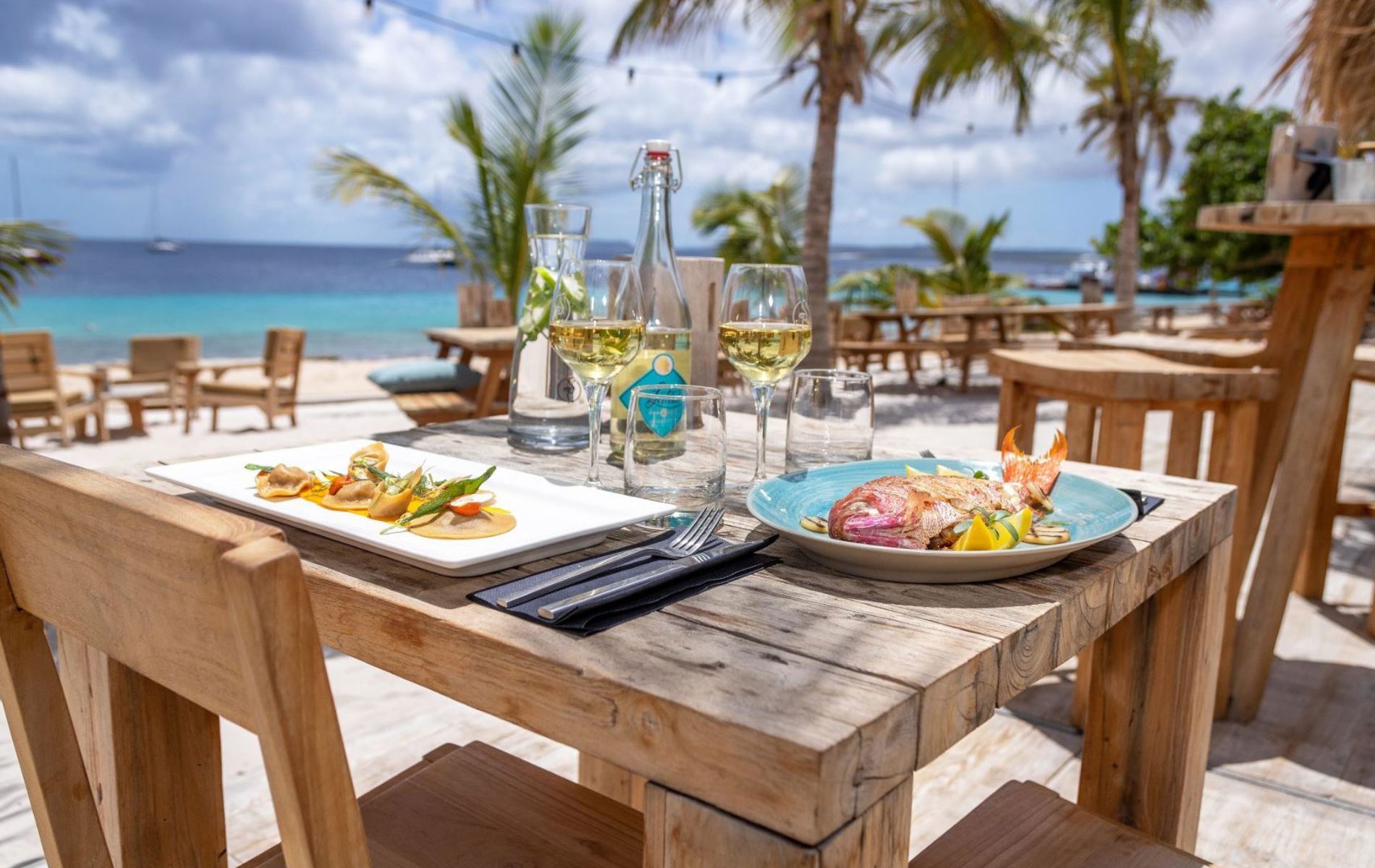Når I ikke er i vandet, kan I forkæle jer selv med gode måltider og kølige drinks på en af resortets tre restauranter – ofte akkompagneret af live musik, der fuldender den caribiske stemning. Her er der god tid til at nyde solnedgangen, mens himlen farves i varme nuancer.