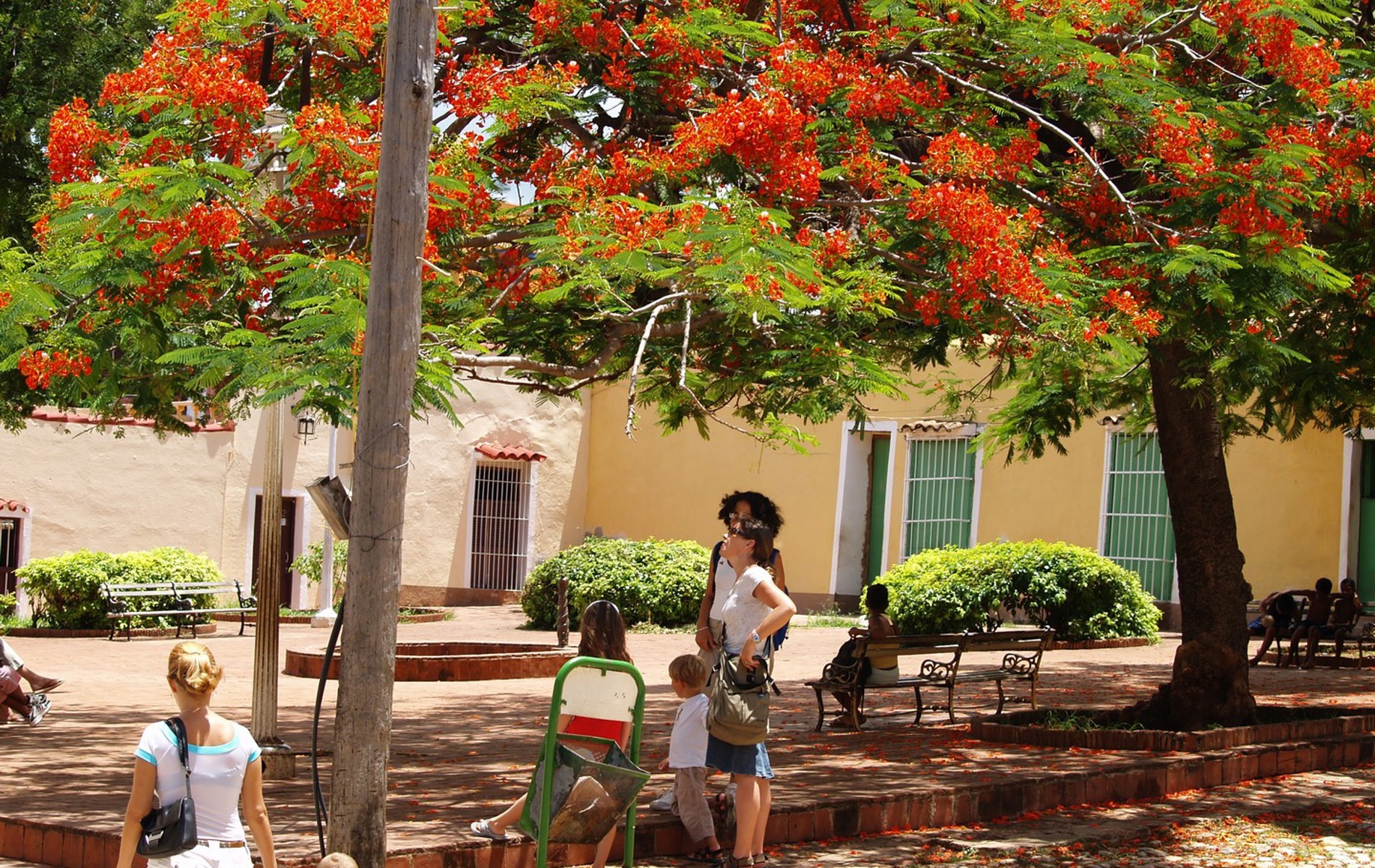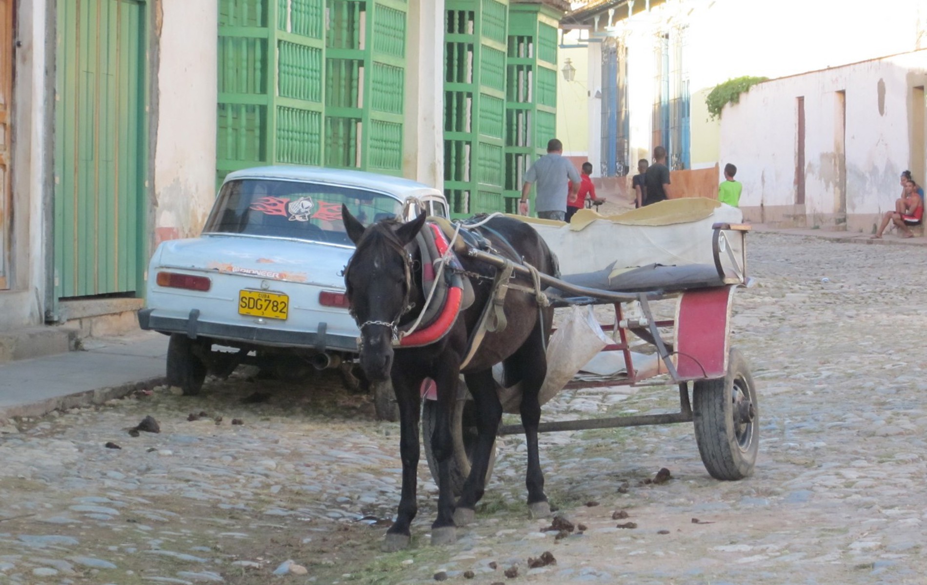 I gaderne leves livet i et roligt tempo – en ung mand trækker sin hest hjem efter dagens arbejde, ældre kvinder sidder i skyggen og broderer, og mændene fletter stråhatte mellem brætspil og samtaler på torvet. Trafikken er minimal, og netop den fredfyldte stemning er Trinidads største attraktion.