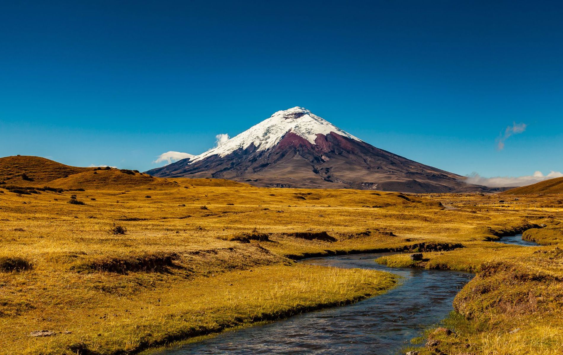 Når man kører sydpå fra Quito, toner Cotopaxi frem på højre side som et af de mest ikoniske syn i hele Ecuador. Med sine 5.875 meter er den landets højeste aktive vulkan og blandt verdens højeste af sin slags. I klart vejr står den snedækkede kegle skarpt mod den blå himmel, og det er let at forstå, hvorfor Cotopaxi i århundreder har været både frygtet og beundret af de mennesker, der lever i dens skygge.