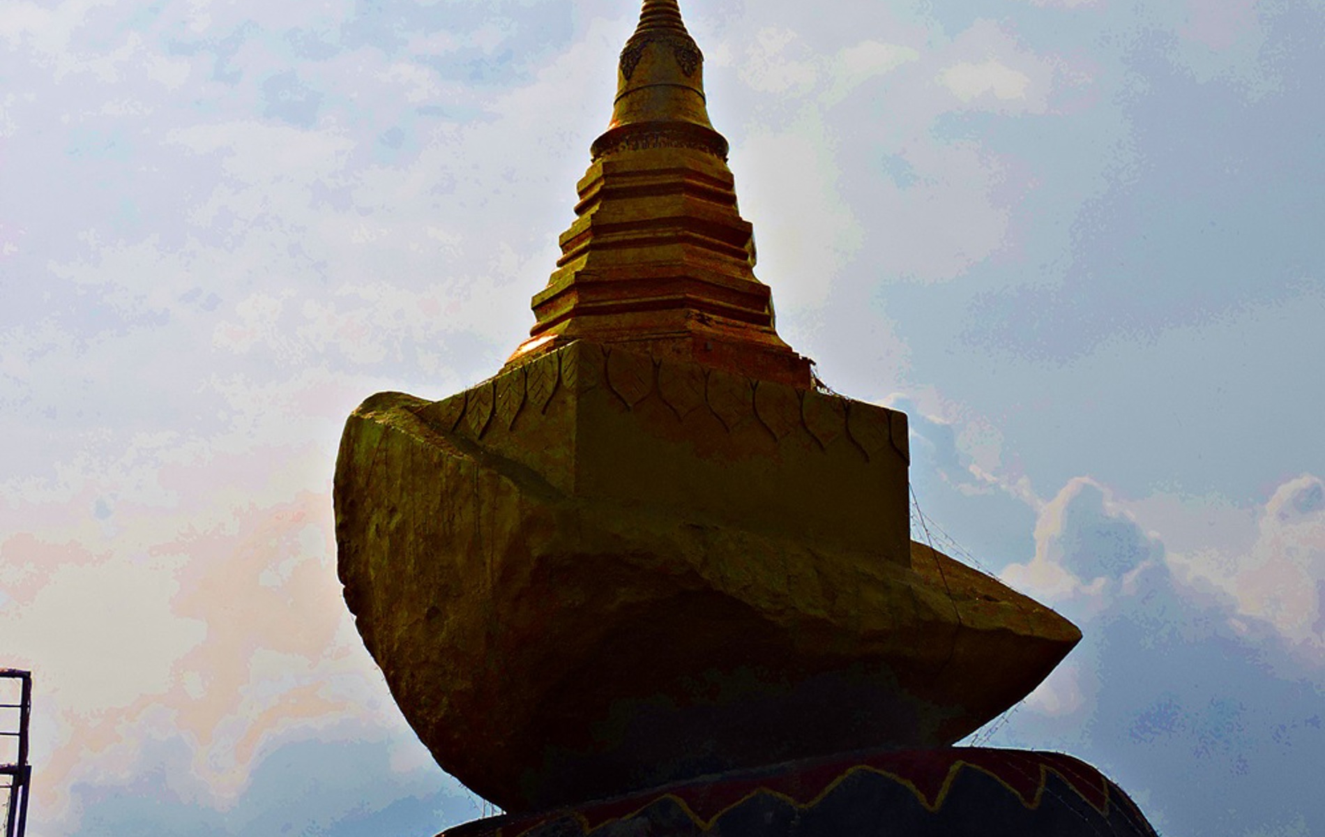 Den Gyldne Klippe balancerer på kanten af Kyaiktiyo bjerget og er et helligt pilgrimssted. Byen Kinpun er beliggende for foden af Kyaiktiyo bjerget, hvorfra man kan vandre eller blive kørt i ladet på en ombygget truck op til indgangen. Derfra venter en kortere gåtur til selve toppen af bjerget, hvor man også finder overnatningssteder, restauranter og templet. Den Gyldne Klippe er belagt med bladguld, som kun mænd må berøre, og på toppen står en lille stupa, som siges at indeholde et hår fra Buddha.