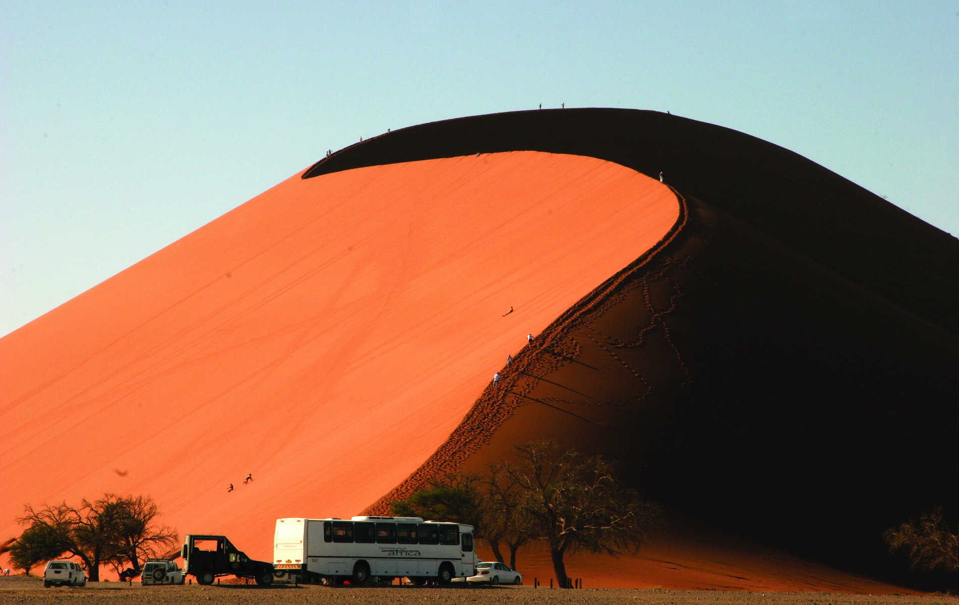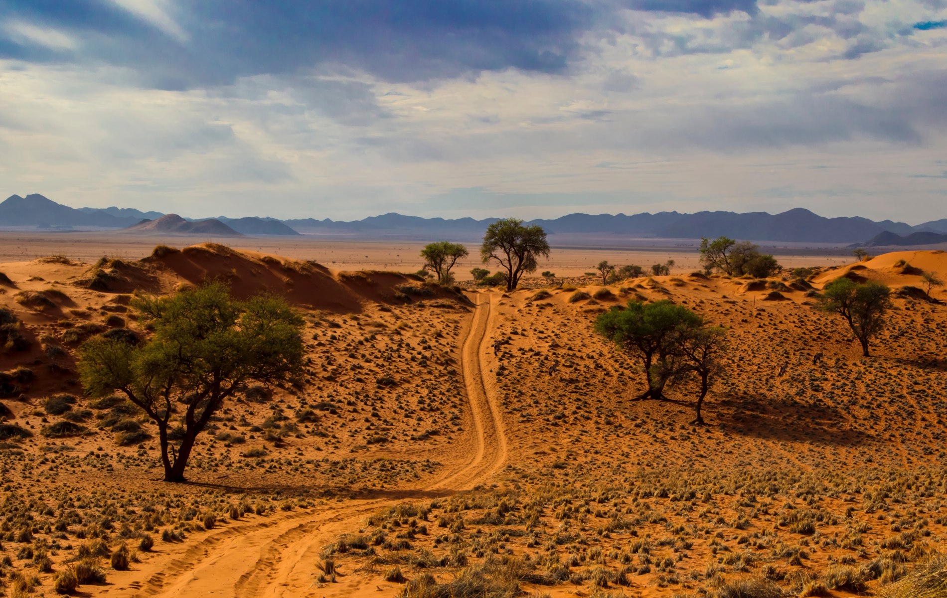 Efter en overnatning i Windhoek begynder eventyret i den storslåede Kalahariørken, hvor endeløse røde sandlandskaber strækker sig på tværs af hele ni afrikanske lande. Rejsen fortsætter til Namibørken med sine spektakulære klitter i Sossusvlei, hvor I kommer til at opleve surrealistiske Deadvlei og den ældste levende ørkenplante Welwitschia mirabilis.