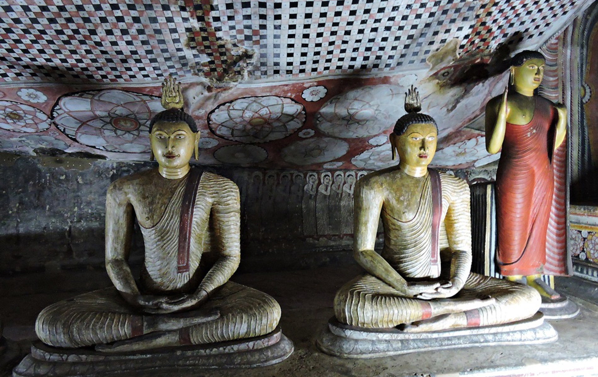 Dambulla er kendt for sine grottetempler. Derudover er der næppe megen grund til at blive i byen, som kan opleves på en dagstur fra Kandy til Sigiriya. Grotte templerne ligger på en bjergtop syd for byens centrum og det lokale marked. Den brede sti, der fører op til de fem tempelgrotter, snor sig stejlt, indtil man kan nyde udsigten, mens man tager en hvilepause. Kong Valagamba søgte tilflugt på dette sted, og efter han genvandt tronen, blev grottetemplerne opført. De har siden været et helligt sted for Buddhister. De fem grotter er store og indeholder i alt 150 imponerende siddende og liggende Buddhastatuer. Kigger man op, kan man beundre de over 200 år gamle Buddha malerier på grotternes bjergloft.
