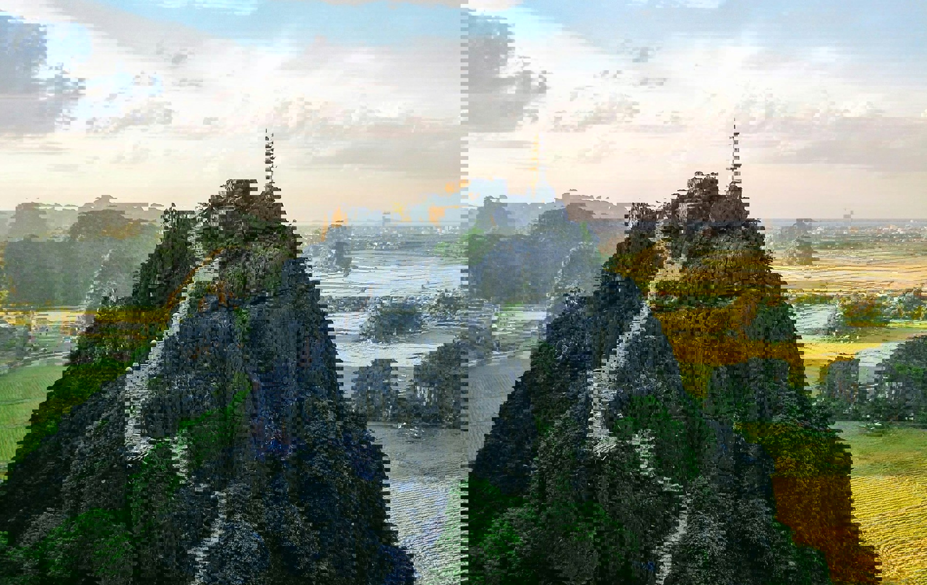 Ninh Binh ligger syd for Hanoi og omtales ofte som “Halong Bay på land” på grund af det spektakulære landskab med kalkstensbjerge, der rejser sig dramatisk op fra floder, rismarker og grønne dale. Området kombinerer storslået natur med historiske og kulturelle seværdigheder og er et af højdepunkterne på en rejse i Nordvietnam.